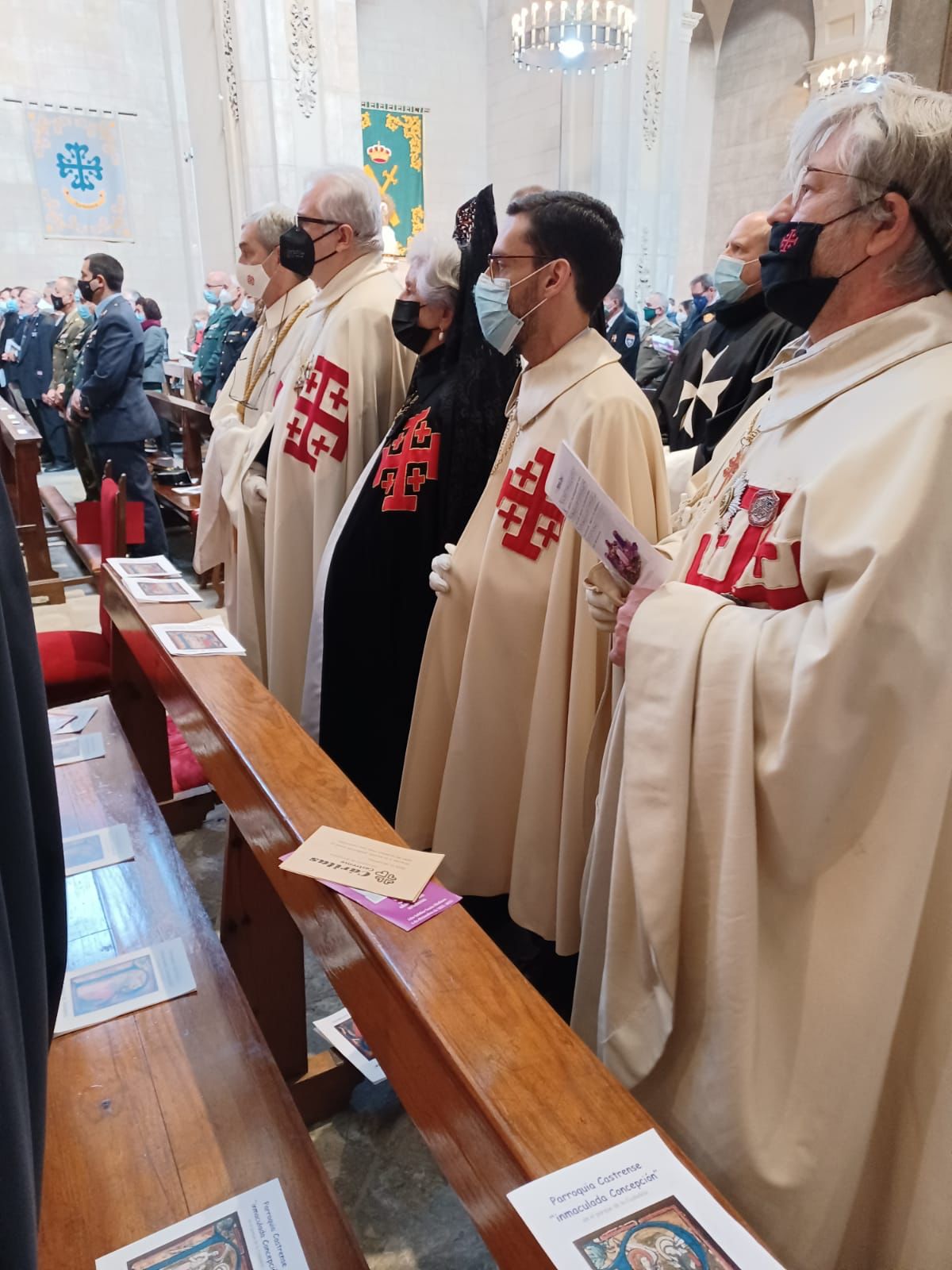 El pasado 19 de diciembre, una representación de la Orden, encabezada por S.E. el Lugarteniente, asistió a la Misa de clausura de la colecta navideña de Cáritas Castrense de Barcelona. La Misa, celebrada en la Parroquia Castrense de la Inmaculada Concepción del Parque de la Ciudadela de Barcelona, fue presidida por el Nuncio Apostólico de Su Santidad el Papa en el Reino de España y en el Principado de Andorra, Excmo. Sr. D. Bernardito Cleopas Auza, y concelebrada por varios sacerdotes, entre ellos el párroco, Ilmo. Sr. D. Javier Orpinell Marco. Unos minutos antes de la celebración, el Nuncio saludó a cada uno de los miembros de la representación de la Orden y departió brevemente con el Lugarteniente.