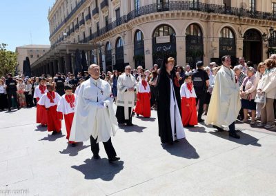 En Zaragoza la Misa Estacional tuvo lugar a las 11 horas en el Altar Mayor de la Catedral Basílica del Pilar, presidida por S.E. Rvdma. D. Carlos Escribano Subías, Arzobispo de Zaragoza, y posteriormente la solemen procesión por la Plaza de Nuestra Señora del Pilar. Varios miembros de la Sección de Aragon acompañaron a la Custodia, dando testimonio y mensaje de piedad y devoción a Cristo Eucaristía.